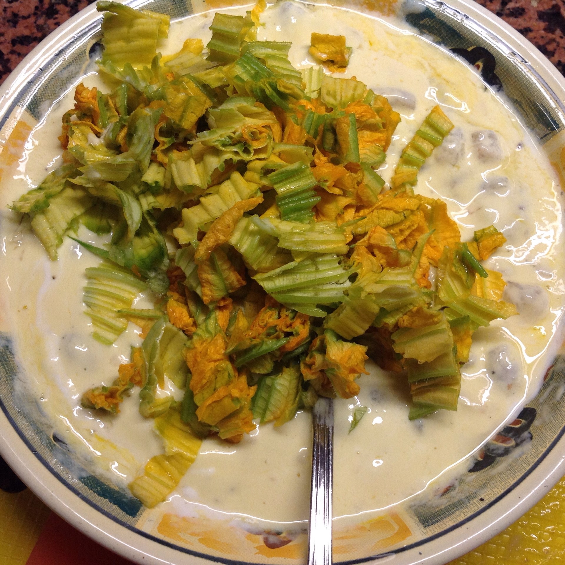 Torta salata con mazzancolle e fiori di zucca