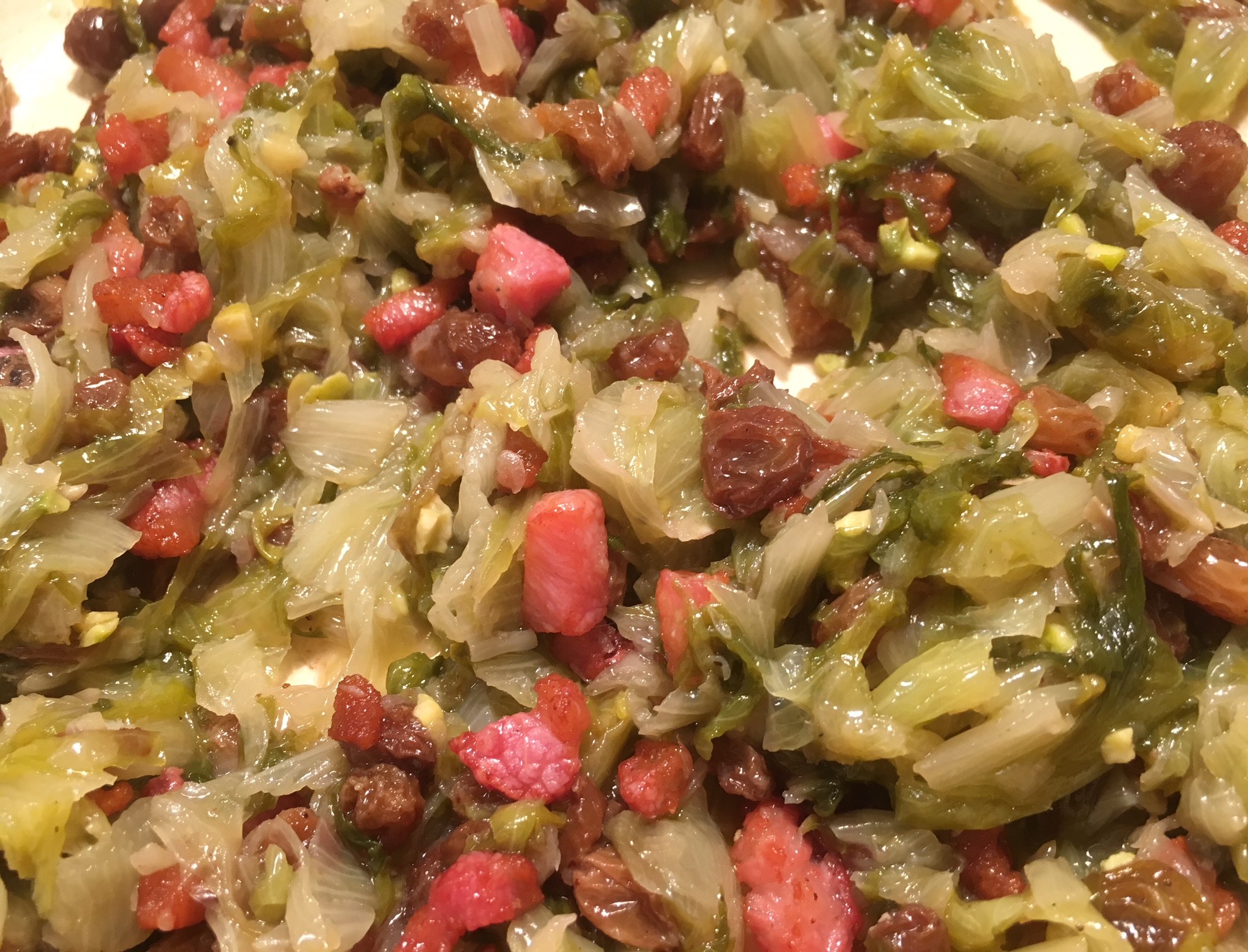 Scarola agrodolce e guanciale croccante