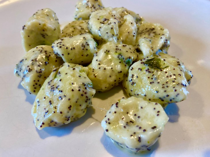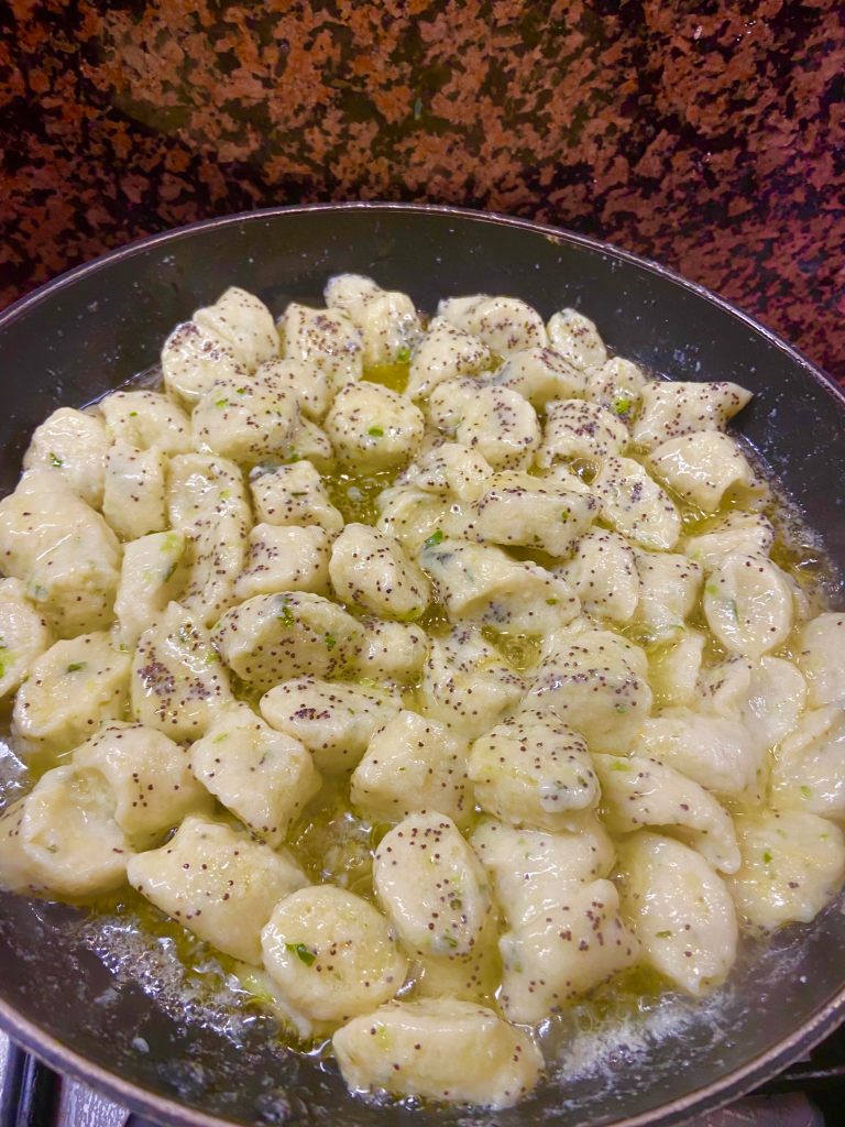Prelevate gli gnocchi con un mestolo forato man mano che vengono a galla e conditeli con il sugo prescelto: burro fuso e semi papavero, burro e salvia, sugo di pomosoro al basilico,pesto alla genovese, ragù alla bolognese, sugo ai 4 formaggi, alla sorrentina ( pomodoro e mozzarella),con salsiccia e funghi.