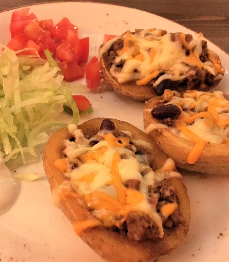 Che serata TexMex sarebbe senza le patate ripiene di chili? potete presentarle come antipasto…